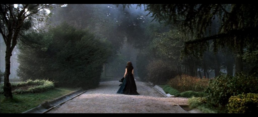 Soit, pour ne prendre qu’un exemple, ce moment retravaillé par Laurent Fiévet, où Giuliana s’apprête pour se rendre probablement à un rendez-vous amoureux. Tullio a été étonné de l’entendre chanter ; il la rejoint tandis qu’elle va et vient dans ses appartements richement décorés, en fredonnant l’Air d’Orphée. Elle lui demande de l’aider à fixer sa voilette qui, tout en obéissant au code vestimentaire en usage, cachera son expression à la pensée de cette sortie alors que son époux note qu’elle vaporise un nouveau parfum. Les entrecroisements entre l’ordinaire et l’inhabituel sont remarquables. Pendant le tournage, Visconti insistait pour que le port de la voilette déforme le visage de la jeune femme. Au moment de quitter la pièce, elle se contemple dans un miroir et, quand elle sera de retour, elle s’observera à nouveau, comme pour déceler un changement survenu à sa personne. Grâce à un montage répétitif, suite d’allers et retours alternatifs autant qu’oppositionnels, Laurent Fiévet crée une durée qui excède l’épisode viscontien. Elle permet de laisser percevoir la métamorphose dans un temps qui lui est propre où les hésitations accompagnent les affleurements de la modification en cours.
